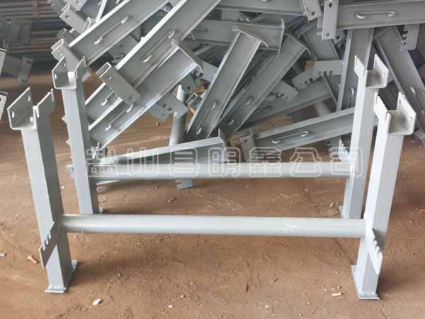 調(diào)心支架是托輥支架的一種,安裝在輸送帶的兩側(cè),防止輸送帶發(fā)生跑偏,使得膠帶運行平穩(wěn)。