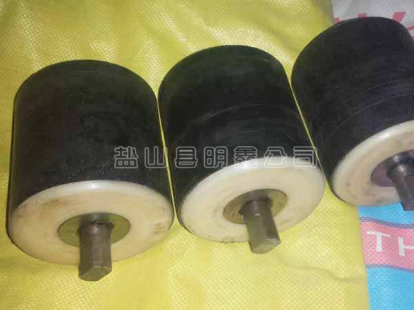 尼龍、高分子托輥是利用尼龍材料所固有的、重量輕的特點(diǎn),將之液態(tài)化,并加入阻燃劑、劑、 劑和固化劑等材料混合后經(jīng)加溫抽真空工藝,脫去水分,并倒入高速旋轉(zhuǎn)的圓筒形模具中,經(jīng)加溫凝固后形成尼龍圓筒,再經(jīng)過(guò)熱處理、機(jī)加工并在圓筒中穿入帶軸承的轉(zhuǎn)軸,兩端裝入密封塊后,便形成了可用于煤礦、鹽場(chǎng)、礦山、糧庫(kù)等場(chǎng)合。