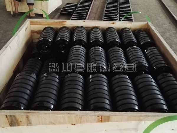 緩沖托輥重量輕,旋轉(zhuǎn)慣性小。托輥高分子材料重量輕,比重是鋼材的七分之一,用這種材料制成的托輥,重量是普通托輥的二分之一左右,旋轉(zhuǎn)慣性小,托輥與皮帶之間的摩擦小。